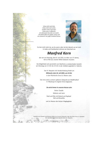 In tiefer Trauer geben wir das Ableben unseres unseres Freundes und Mitgliedes Manfred Kern bekannt.